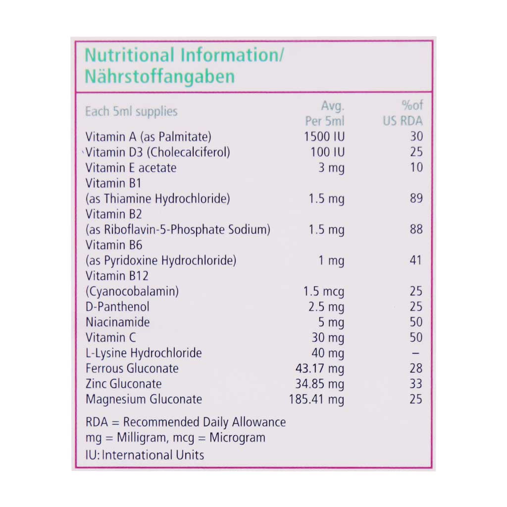 ال-لیزین:لازم برای ساخت پروتئین ها، کمک به بهبود و ترمیم سلول های آسیب دیده، موثر در افزایش اشتها و وزن گیری مناسب کودکان